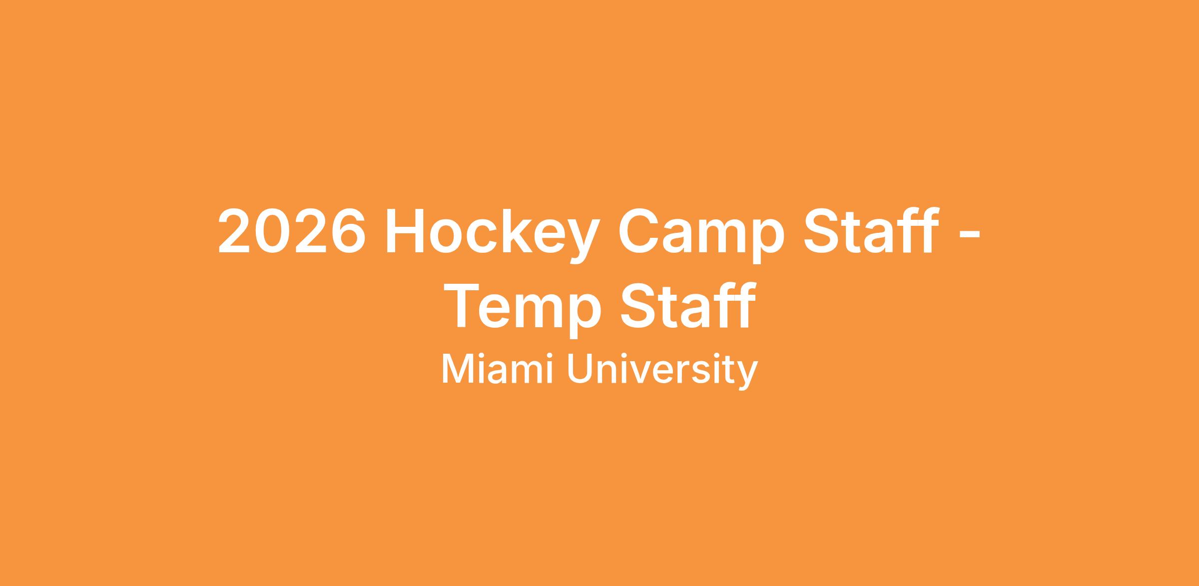 2026 Hockey Camp Staff - Temp StaffDepartment