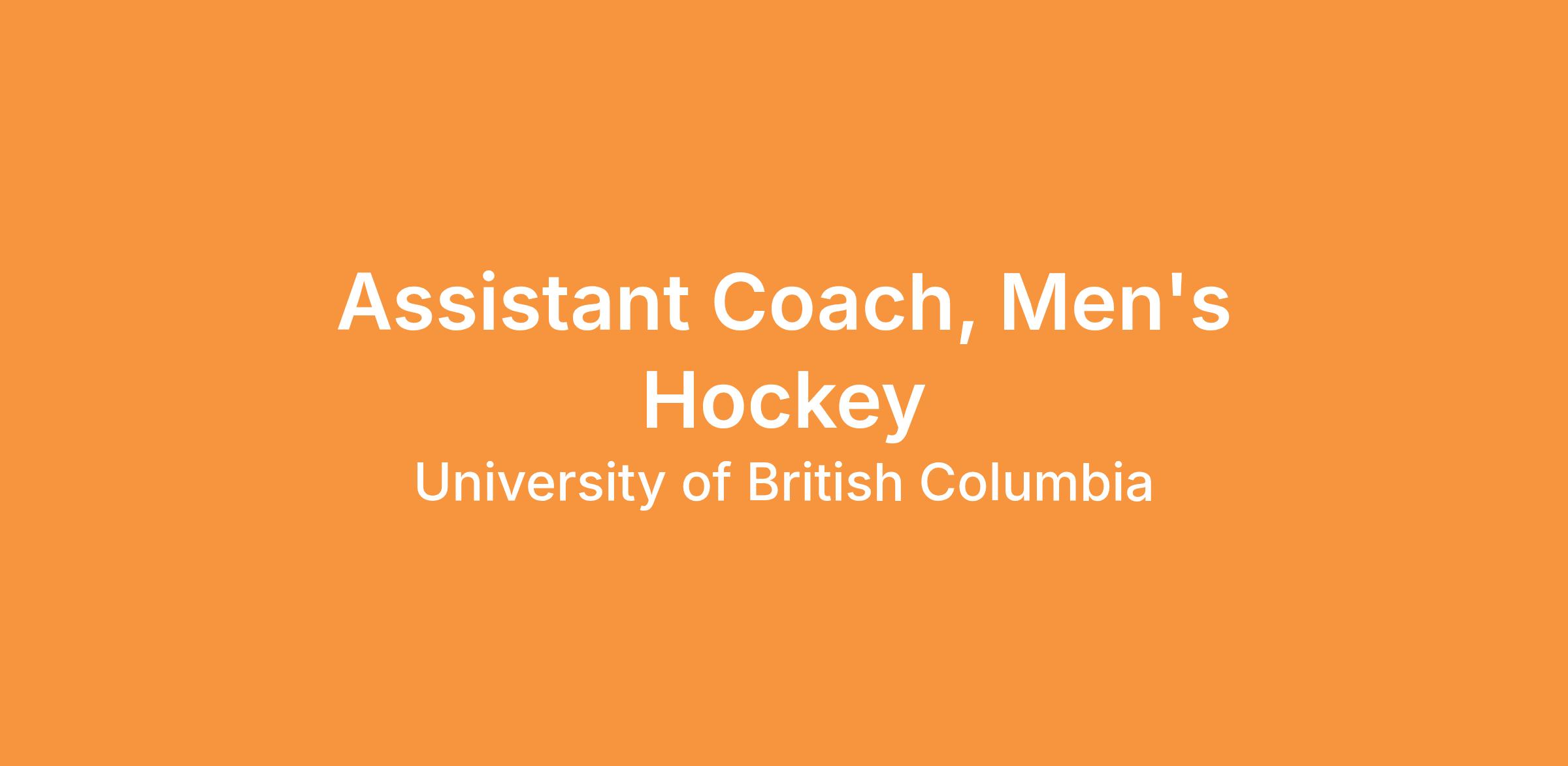 UBC is committed to supporting the best possible environments for working, learning and living where respect, civility, diversity, excellence and inclusion are valued. The Assistant Coach, Men’s Hockey reports directly to the Head Coach, Men’s Hockey on a daily basis and is ultimately responsible to the Director of Athletics – Operations and Team Support. This role interacts with other departmental, faculty and on campus/off campus stakeholders.