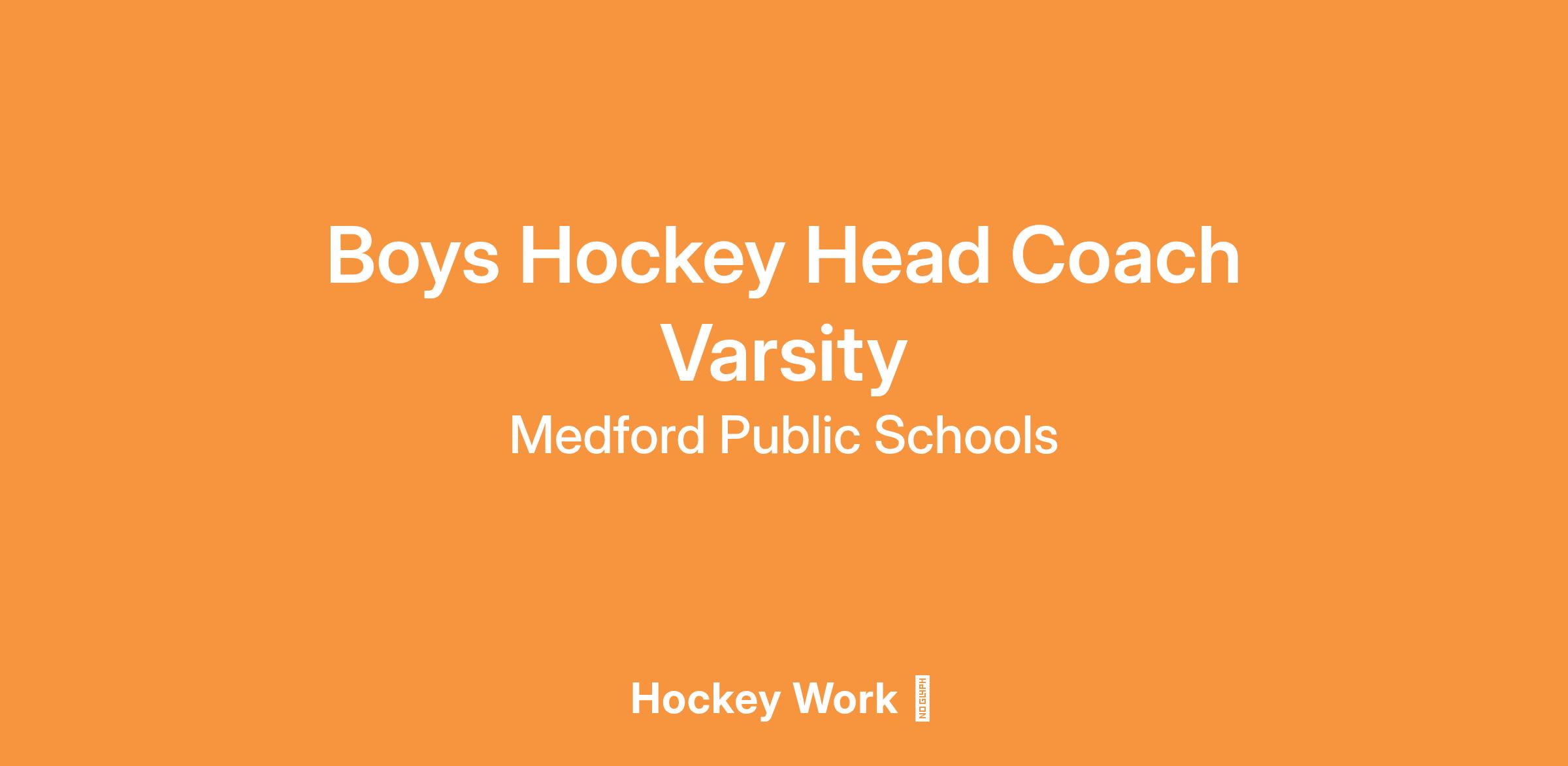 Medford Public Schools Medford Athletics Department is seeking a Boys Hockey Coach for the varsity team. The qualified applicant will assume responsibility for all areas relating to the team's management. This position requires the applicant to report to the Director of Athletics and the High School Principal.