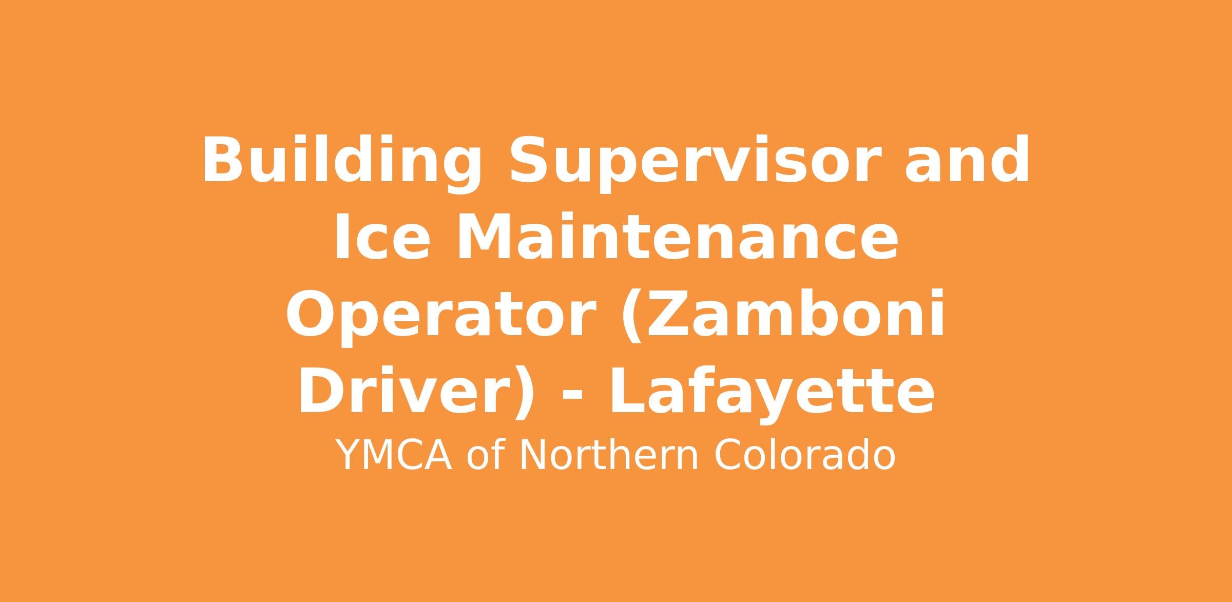 The YMCA of Northern Colorado is currently hiring for part-time, year-round year-round building supervisors/ice maintenance operators. These positions include day, evening and weekend shifts at our branch.