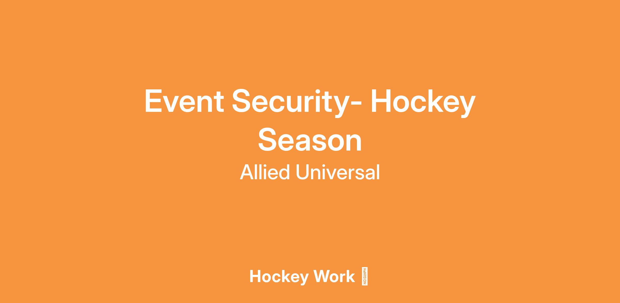 NOW HIRING EVENT SECURITY GUARD FOR HOCKEY SEASON! GET IN ON THE ACTION AND APPLY TODAY! Flexible Scheduling and weekly pay. $18/hr.