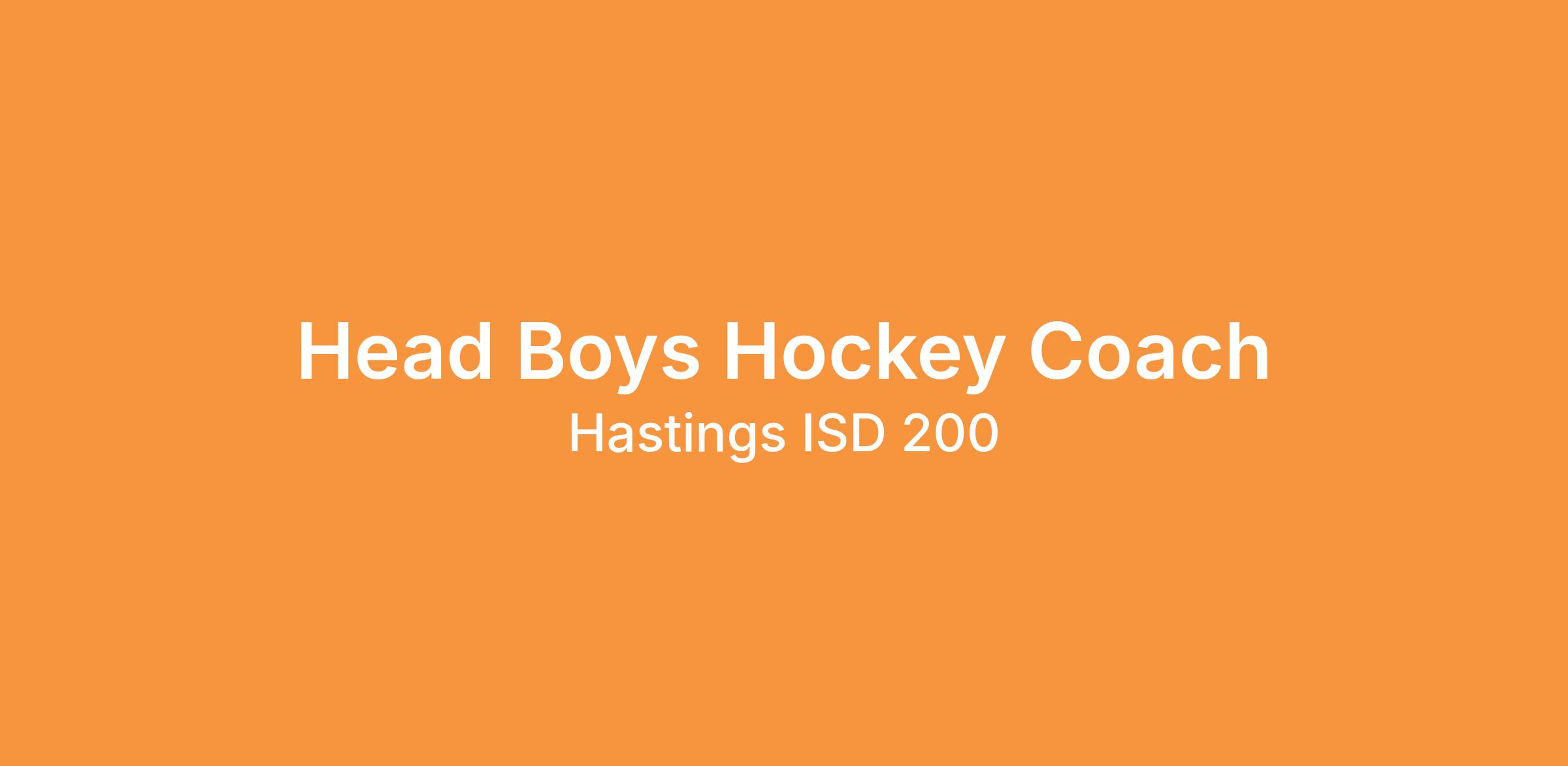 Hastings High School is seeking a highly qualified candidate to serve as Head Boys Hockey Coach.
