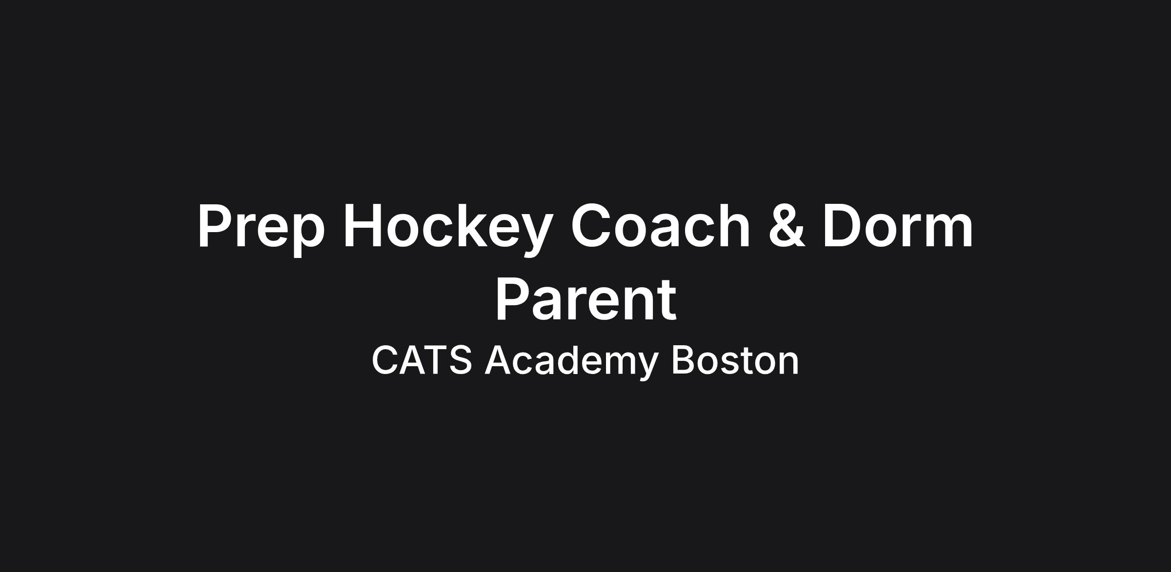 CATS Academy Boston is a global boarding school that values academic excellence, student wellbeing, and high-impact extracurricular programs. This role offers a unique opportunity to shape a growing hockey program while playing a meaningful role in the daily lives of student-athletes.