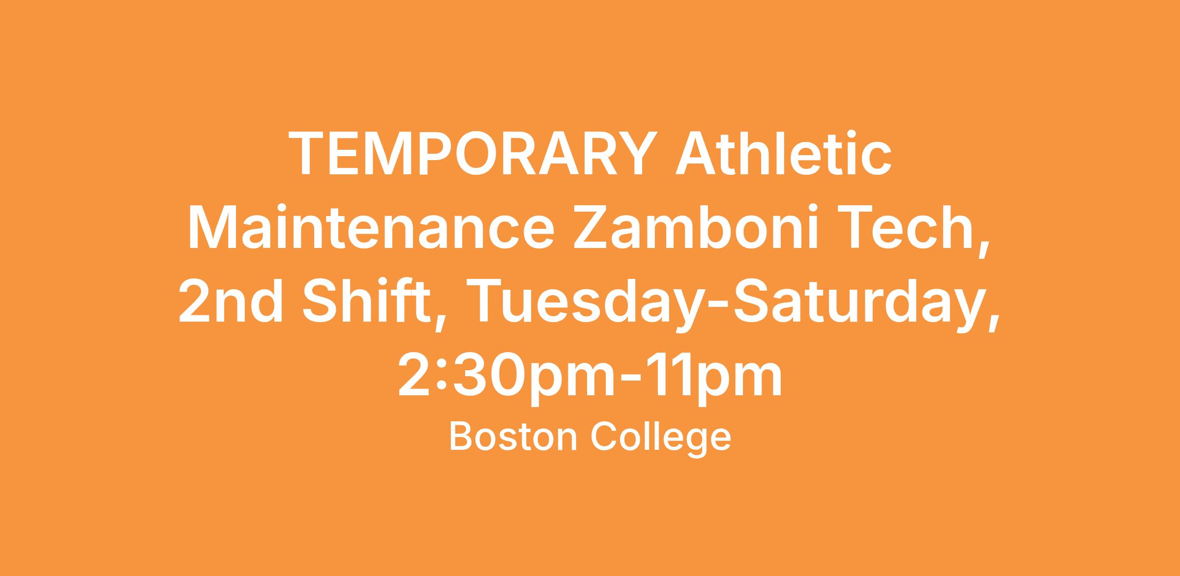 An experienced, energetic athletic maintenance staff member will report to the Manager, Athletic Maintenance and the Supervisor, Arena, he or she will need to provide Boston College, Boston College Athletics and the public with clean and safe athletic facilities and playing surfaces.Ā